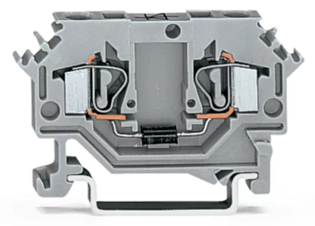 złączka do zabudowy elementów; 2-przew.; z diodą 1N4007; anoda po lewej; na szynę TS 35 x 15 i 35 x 7,5; 4 mm²; CAGE CLAMP®; szary