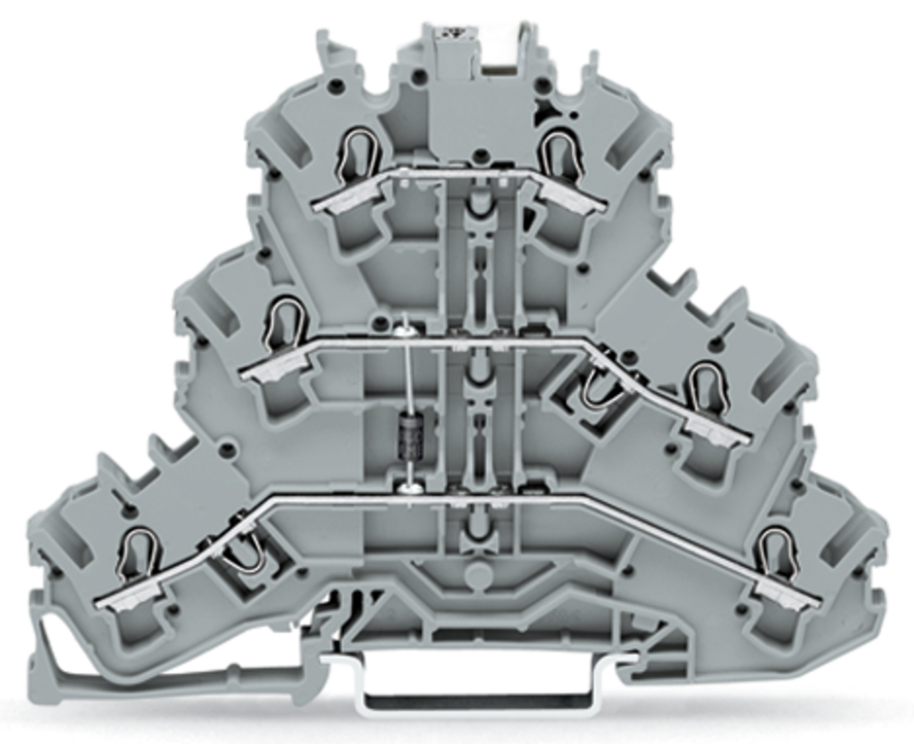 złączka do zabudowy elementów; 3-piętr.; z diodą 1N4007; anoda u góry; na szynę TS 35 x 15 i 35 x 7,5; 2,5 mm²; Push-in CAGE CLAMP®; szary