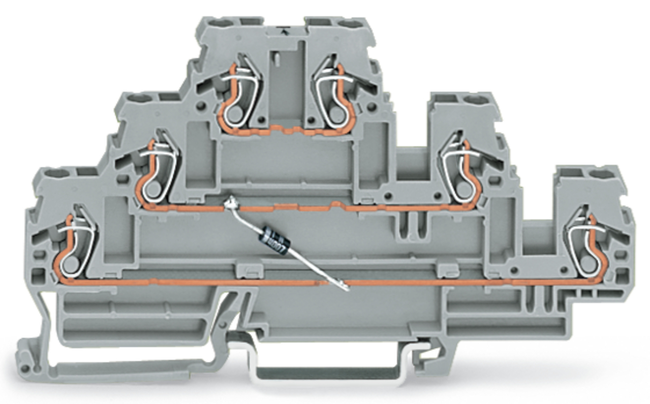 złączka do zabudowy elementów; 3-piętr.; z diodą 1N4007; anoda na dole; na szynę TS 35 x 15 i 35 x 7,5; 2,5 mm²; CAGE CLAMP®; szary