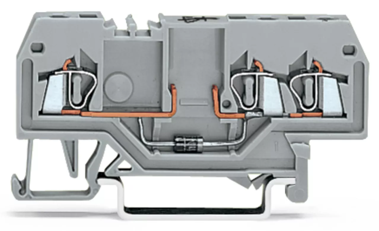 złączka do zabudowy elementów; 3-przew.; z diodą 1N4007; anoda po prawej; na szynę TS 35 x 15 i 35 x 7,5; 1,5 mm²; CAGE CLAMP®; szary