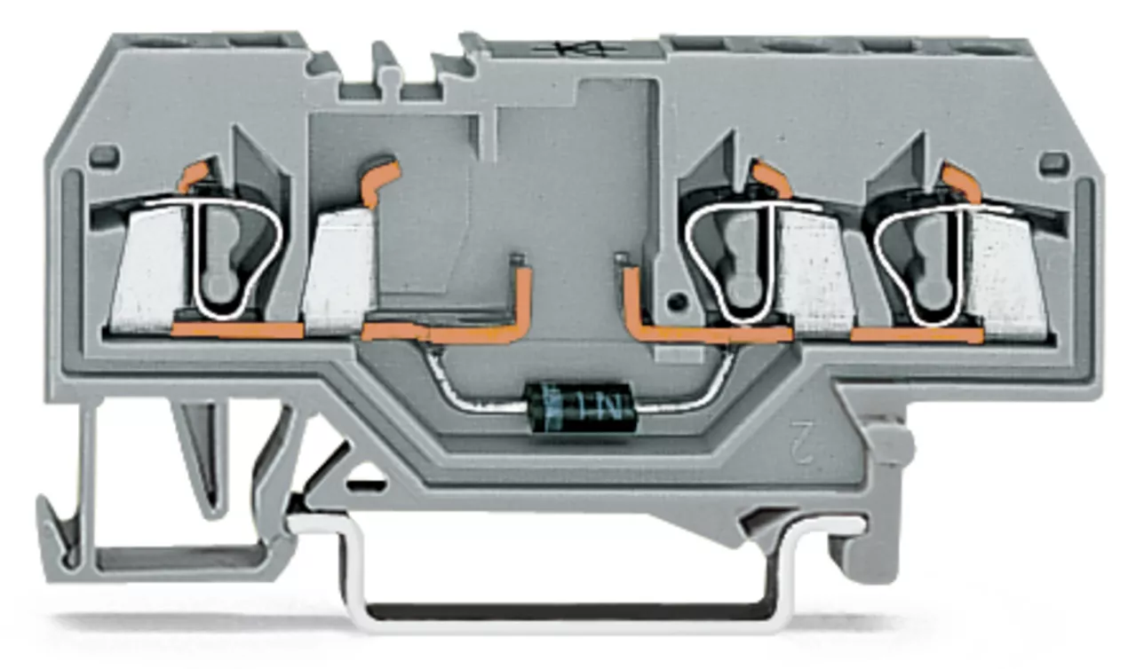 złączka do zabudowy elementów; 3-przew.; z diodą 1N4007; anoda po lewej; na szynę TS 35 x 15 i 35 x 7,5; 2,5 mm²; CAGE CLAMP®; szary
