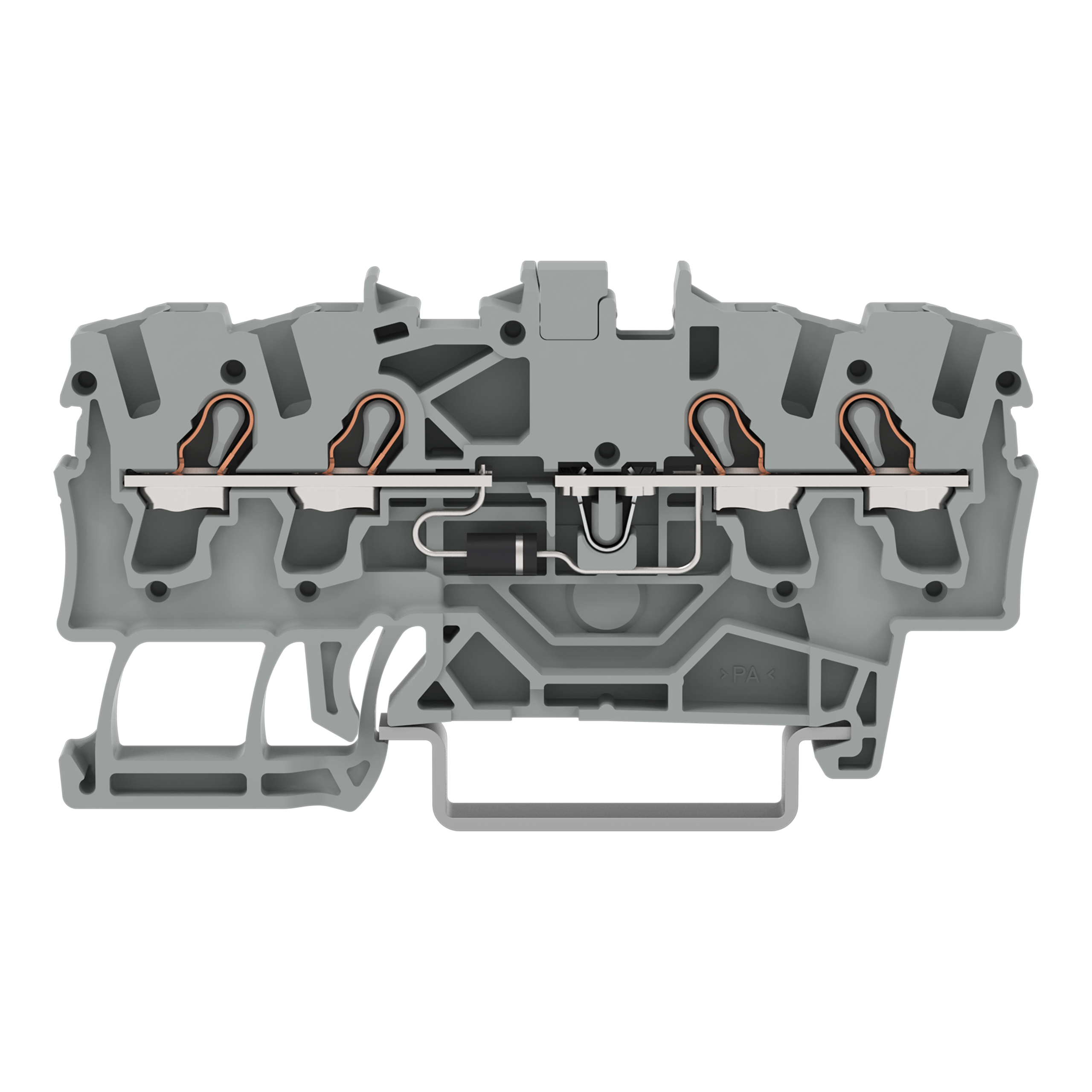 złączka do zabudowy elementów; 4-przew.; z diodą 1N4007; anoda po lewej; na szynę TS 35 x 15 i 35 x 7,5; 2,5 mm²; Push-in CAGE CLAMP®; 2,50 mm²; szary