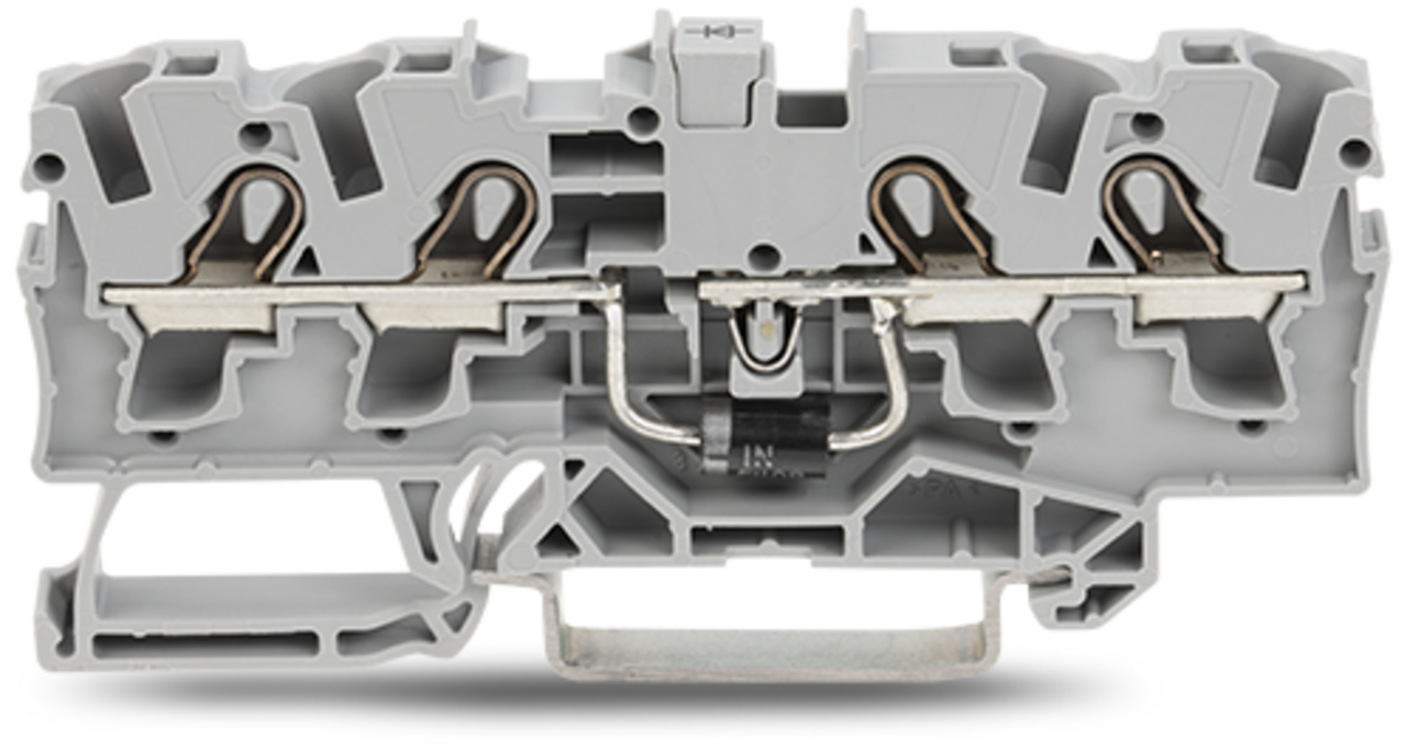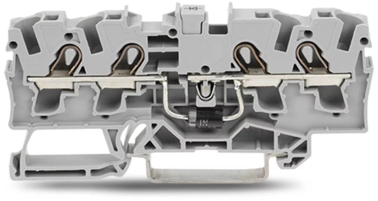 złączka do zabudowy elementów; 4-przew.; z diodą 1N5408; anoda po prawej; na szynę TS 35 x 15 i 35 x 7,5; 4 mm²; Push-in CAGE CLAMP®; szary