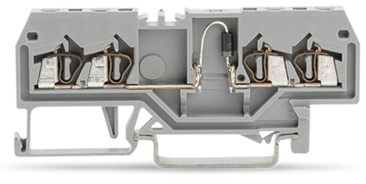 złączka do zabudowy elementów; 4-przew.; z diodą 1N4007; anoda po prawej; na szynę TS 35 x 15 i 35 x 7,5; 1,5 mm²; CAGE CLAMP®; szary