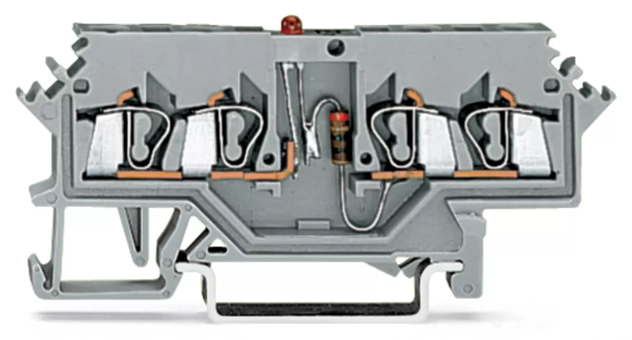złączka do zabudowy elementów; 4-przew.; LED czerwona; 24 V DC; na szynę TS 35 x 15 i 35 x 7,5; 2,5 mm²; CAGE CLAMP®; szary