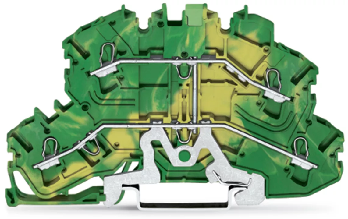 złączka 2-piętrowa; złączka PE 4-przewodowa; o kształcie złączki rozłączalnej 2-piętrowej; 2,5 mm²; PE; z mostkowaniem wewnętrznym; bez podstawki oznacznika; na szynę TS 35 x 15 i 35 x 7,5; Push-in CAGE CLAMP®; 2,50 mm²; żółto-zielony