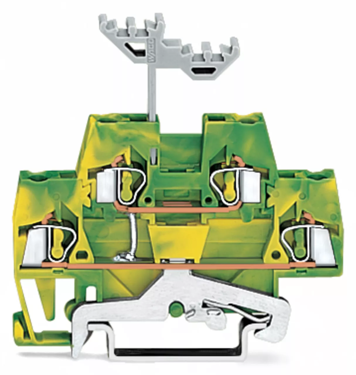 złączka 2-piętrowa; złączka PE 4-przewodowa; 2,5 mm²; z mostkowaniem wewnętrznym; na szynę TS 35 x 15 i 35 x 7,5; CAGE CLAMP®; 2,50 mm²; żółto-zielony