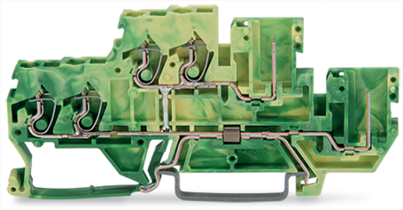 złączka 2-piętrowa; złączka PE 4-przewodowa; 2,5 mm²; PE; bez podstawki oznacznika; z mostkowaniem wewnętrznym; na szynę TS 35 x 15 i 35 x 7,5; CAGE CLAMP®; 2,50 mm²; żółto-zielony