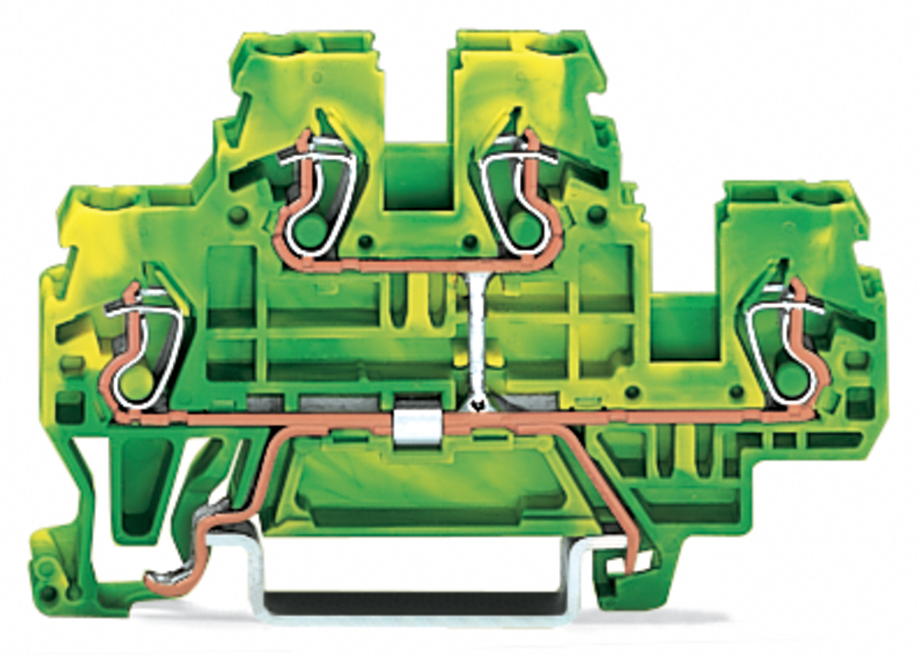 złączka 2-piętrowa; złączka PE 4-przewodowa; 2,5 mm²; PE; bez podstawki oznacznika; z mostkowaniem wewnętrznym; na szynę TS 35 x 15 i 35 x 7,5; CAGE CLAMP®; 2,50 mm²; żółto-zielony