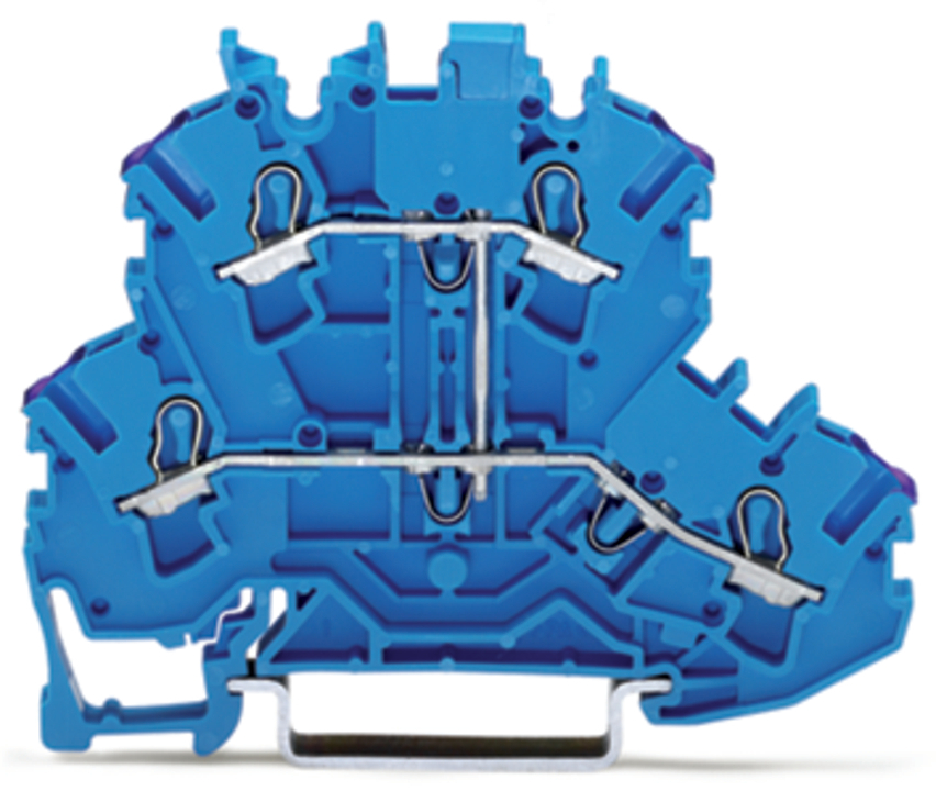 złączka 2-piętrowa; złączka przelotowa 4-przewodowa; N; bez podstawki oznacznika; do zastosowań Ex e II oraz Ex i; z mostkowaniem wewnętrznym; otwory na przewody z fiolet. nadrukiem; na szynę TS 35 x 15 i 35 x 7,5; 2,5 mm²; Push-in CAGE CLAMP®; 2,50 mm²; niebieski