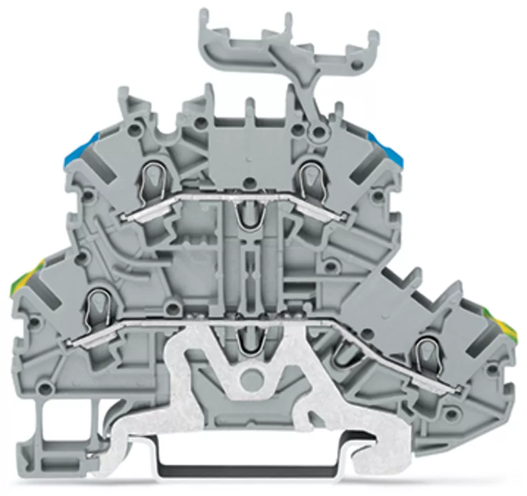 złączka 2-piętrowa; złączka PE/przelotowa; 1 mm²; PE/L; z podstawką oznacznika; na szynę TS 35 x 15 i 35 x 7,5; Push-in CAGE CLAMP®; 1,00 mm²; szary