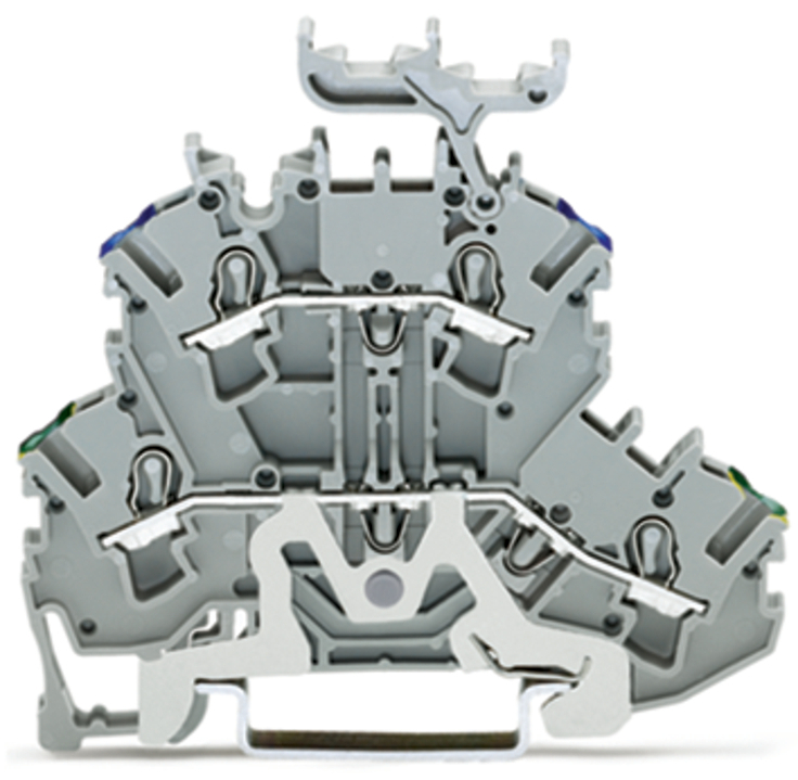 złączka 2-piętrowa; złączka PE/przelotowa; 2,5 mm²; PE/N; do zastosowań Ex e II; z podstawką oznacznika; na szynę TS 35 x 15 i 35 x 7,5; Push-in CAGE CLAMP®; 2,50 mm²; szary