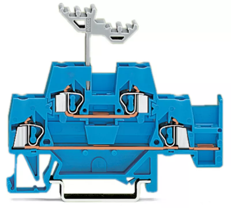 złączka 2-piętrowa; złączka przelotowa/przelotowa; z dodatkowym mostkowaniem dolnego piętra; do zastosowań Ex i; na szynę TS 35 x 15 i 35 x 7,5; 2,5 mm²; CAGE CLAMP®; 2,50 mm²; niebieski/niebieski