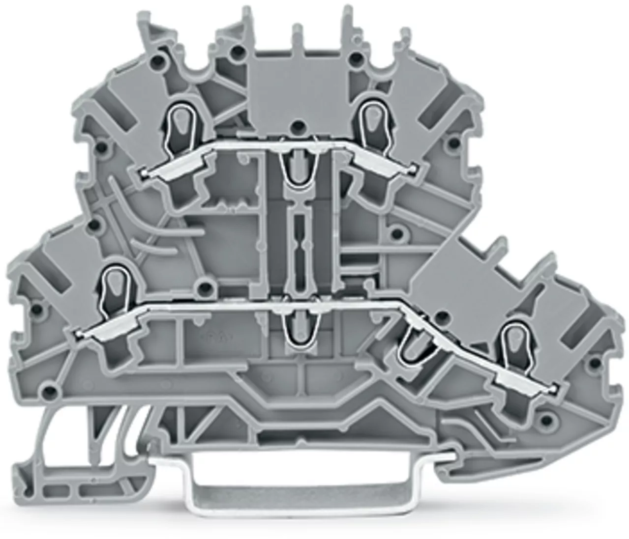 złączka 2-piętrowa; złączka przelotowa/przelotowa; L/L; bez podstawki oznacznika; na szynę TS 35 x 15 i 35 x 7,5; Push-in CAGE CLAMP®; 1,00 mm²; szary