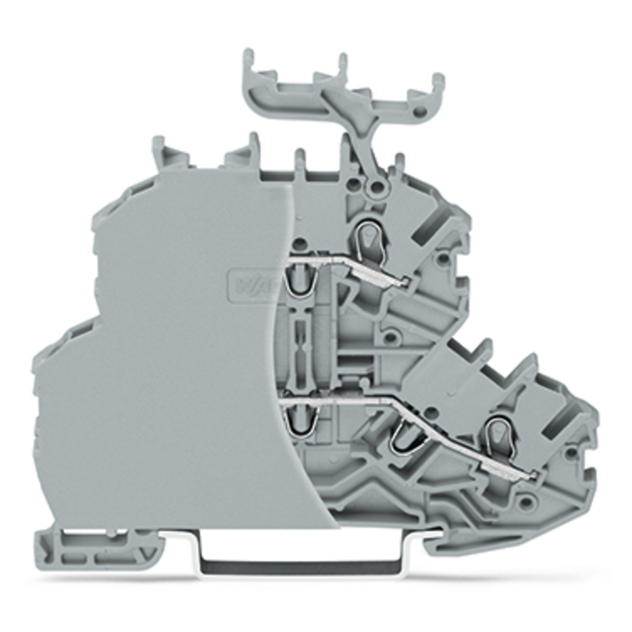 złączka 2-piętrowa; złączka przelotowa/przelotowa; ze ścianką końcową; L/L; z podstawką oznacznika; na szynę TS 35 x 15 i 35 x 7,5; Push-in CAGE CLAMP®; 1,00 mm²; szary