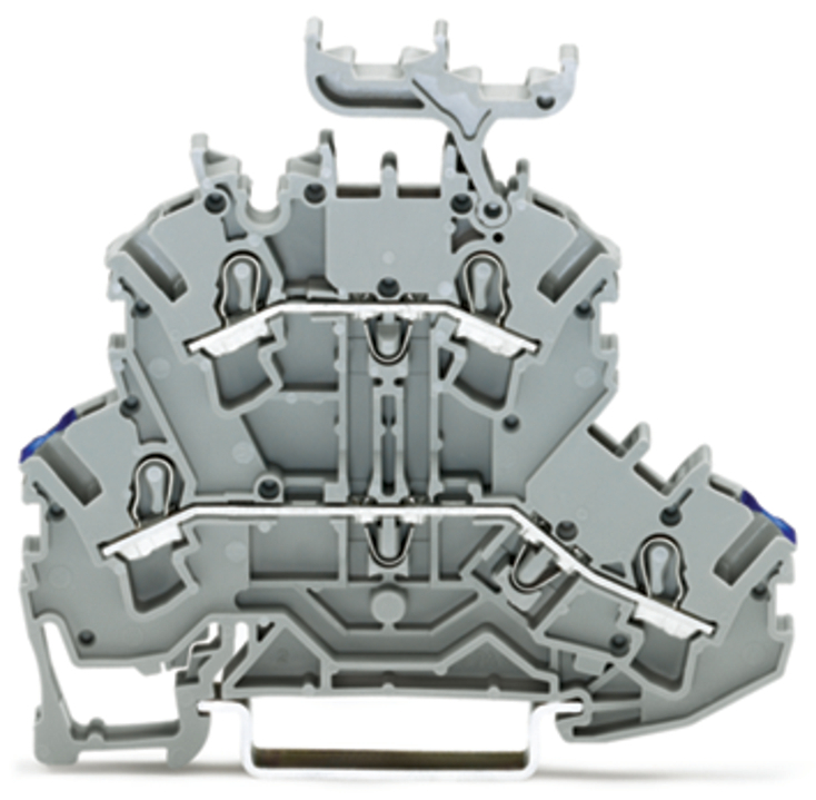 złączka 2-piętrowa; złączka przelotowa/przelotowa; N/L; z podstawką oznacznika; do zastosowań Ex e II; otwory na przewody, parter, nadruk nieb.; na szynę TS 35 x 15 i 35 x 7,5; 2,5 mm²; Push-in CAGE CLAMP®; 2,50 mm²; szary