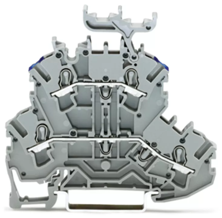 złączka 2-piętrowa; złączka przelotowa/przelotowa; L/N; z podstawką oznacznika; do zastosowań Ex e II; otwory na przewody piętro, nadruk nieb.; na szynę TS 35 x 15 i 35 x 7,5; 2,5 mm²; Push-in CAGE CLAMP®; 2,50 mm²; szary