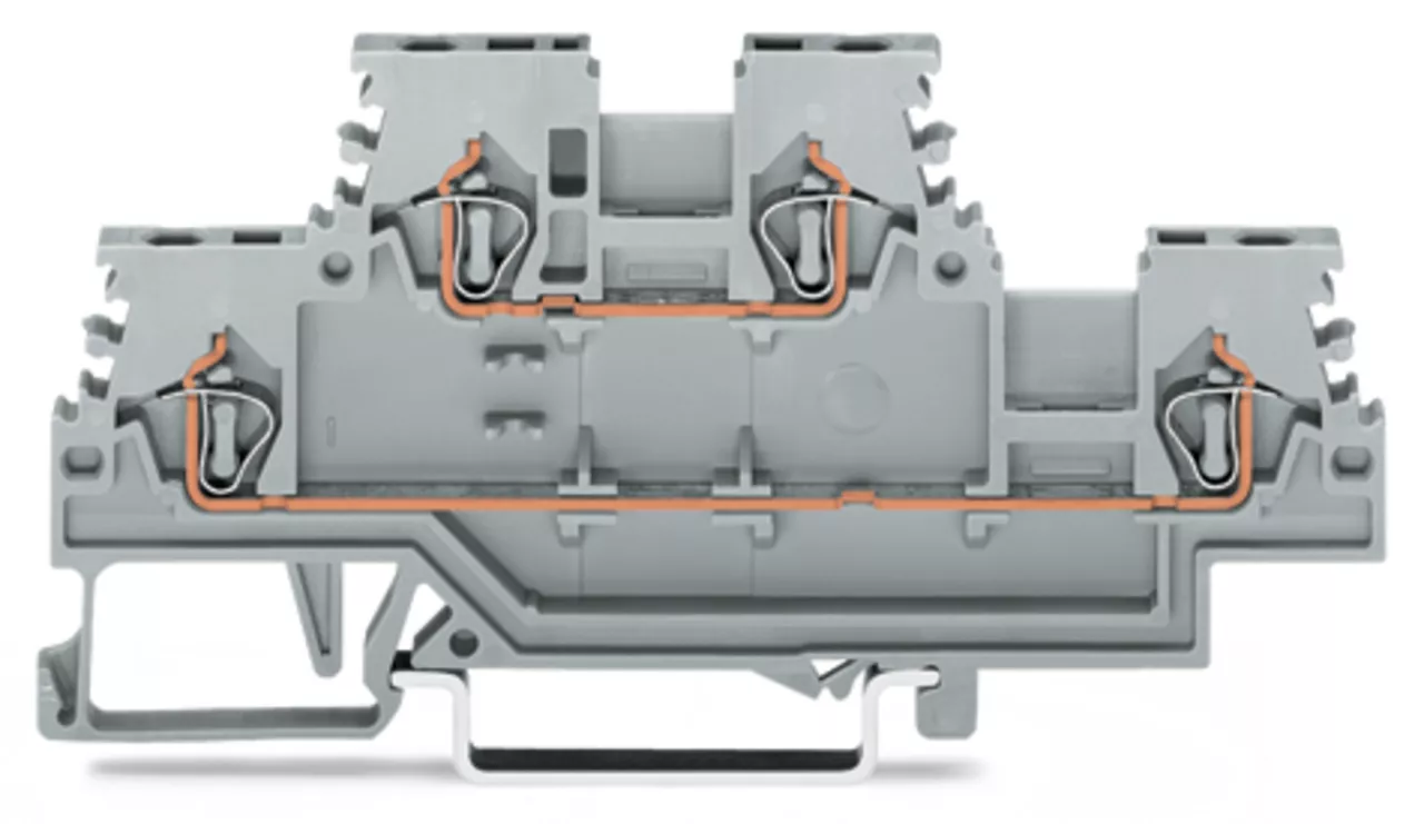 złączka 2-piętrowa; złączka przelotowa/przelotowa; L/L; na szynę TS 35 x 15 i 35 x 7,5; 1,5 mm²; 1,50 mm²; szary