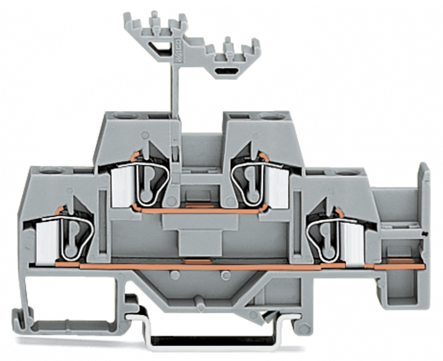 złączka 2-piętrowa; złączka przelotowa/przelotowa; z dodatkowym mostkowaniem dolnego piętra; na szynę TS 35 x 15 i 35 x 7,5; 4 mm²; 4,00 mm²; szary