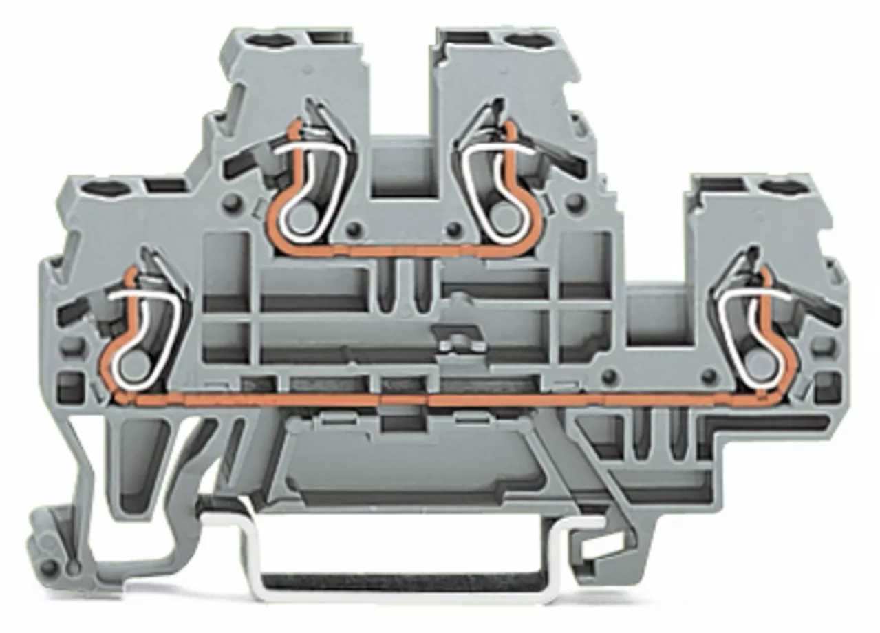 złączka 2-piętrowa; złączka przelotowa/przelotowa; L/N; na szynę TS 35 x 15 i 35 x 7,5; 2,5 mm²; CAGE CLAMP®; 2,50 mm²; szary