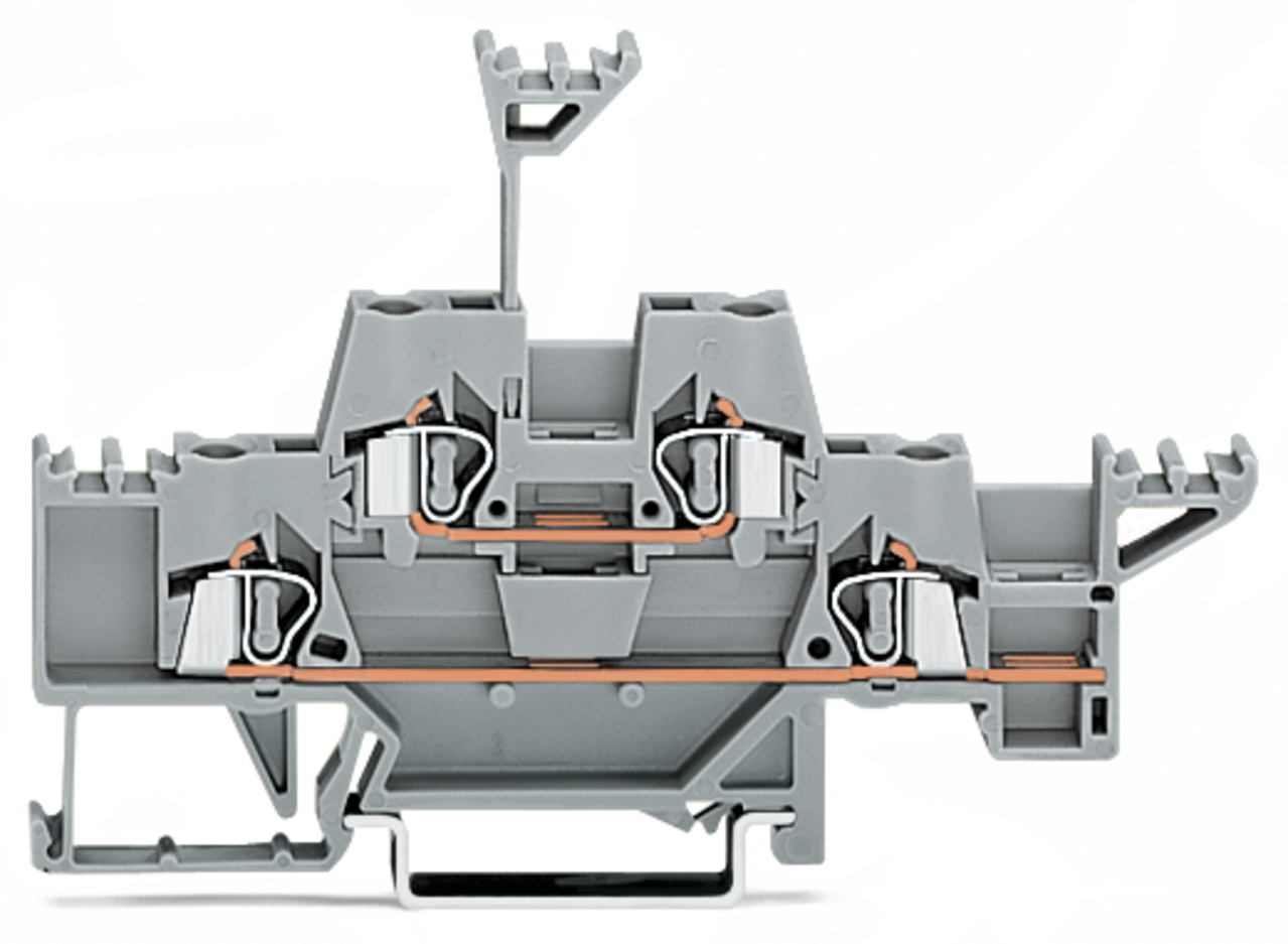 złączka 2-piętrowa; złączka przelotowa/przelotowa; z dodatkowym mostkowaniem dolnego piętra; na szynę TS 35 x 15 i 35 x 7,5; 2,5 mm²; CAGE CLAMP®; 2,50 mm²; szary/szary