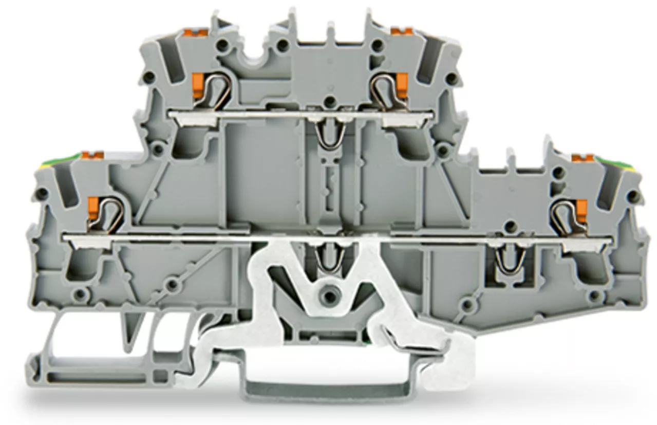 złączka 2-piętrowa; z przyciskami; 2,5 mm²; PE/L; do zastosowań Ex e II; bez podstawki oznacznika; na szynę TS 35 x 15 i 35 x 7,5; Push-in CAGE CLAMP®; 2,50 mm²; szary