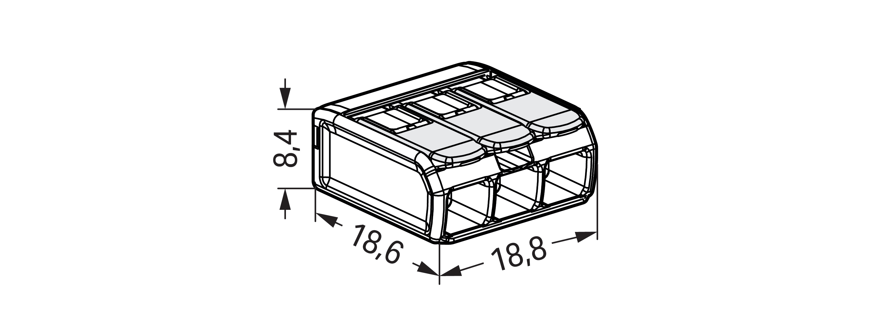 złączka instalacyjna z dźwignią; do wszystkich rodzajów przewodów; do zastosowań Ex e; maks. 4 mm²; 3-przew.; kolor obudowy przezroczysty; temperatura pracy maks. 105°C; 4,00 mm²; transparentny
