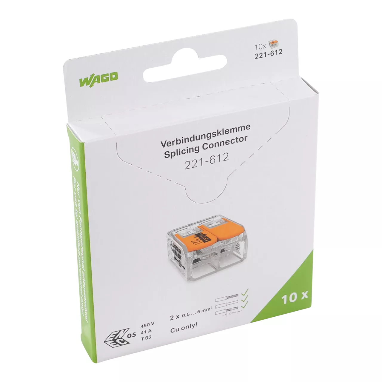 złączka instalacyjna z dźwignią; do wszystkich rodzajów przewodów; maks. 6 mm²; 2-przew.; kolor obudowy przezroczysty; temperatura otoczenia maks. 85°C (T85); 6,00 mm²; transparentny
