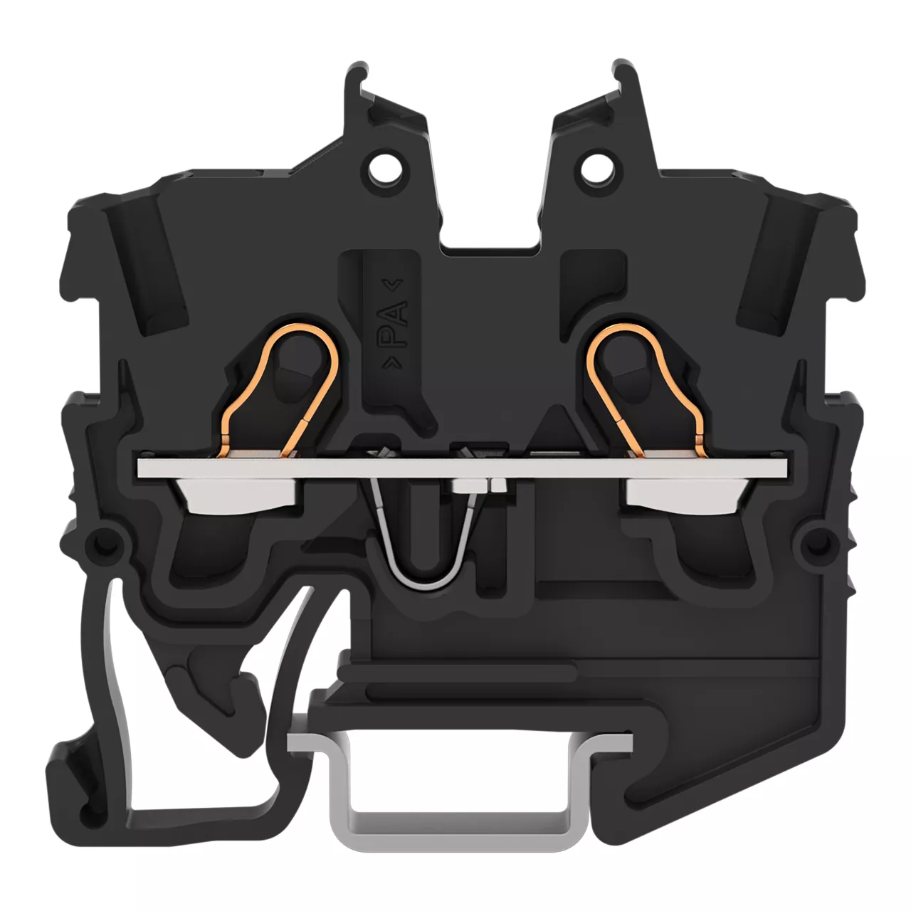 złączka przelotowa Mini 2-przewodowa; z otworem montażowym; 1 mm²; z otworem pomiarowym; opis z boku i na środku; na szynę 15; Push-in CAGE CLAMP®; 1,00 mm²; czarny