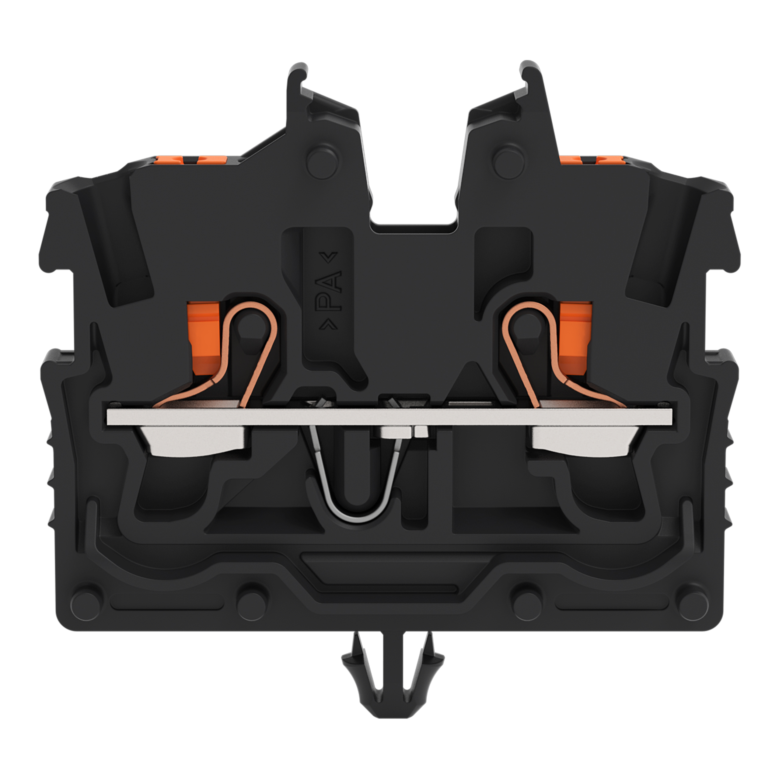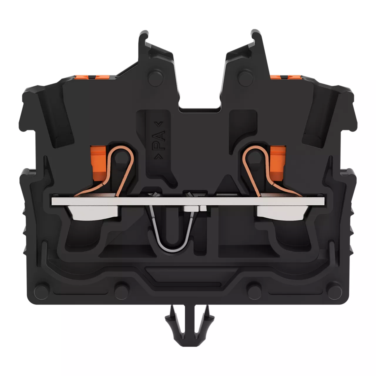 złączka przelotowa Mini 2-przewodowa; z przyciskami; 1 mm²; ze stopką zatrzaskową; opis z boku i na środku; z otworem pomiarowym; Push-in CAGE CLAMP®; 1,00 mm²; czarny