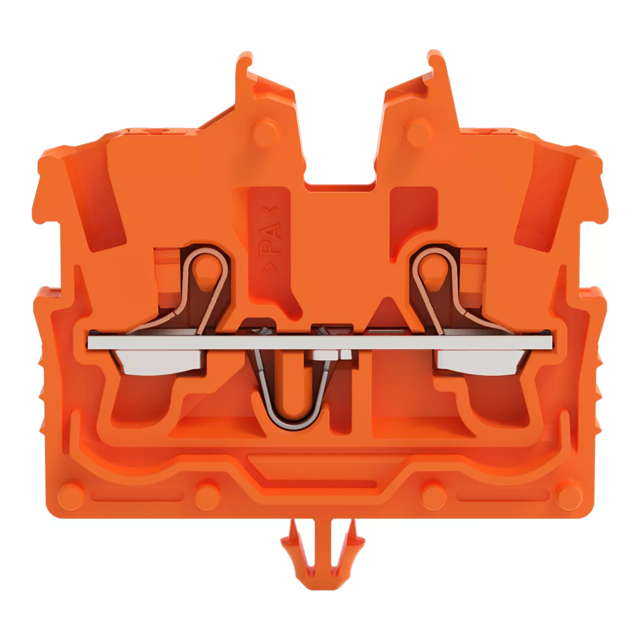 złączka przelotowa Mini 2-przewodowa; z przyciskami; 1 mm²; ze stopką zatrzaskową; opis z boku i na środku; z otworem pomiarowym; Push-in CAGE CLAMP®; 1,00 mm²; pomarańczowy
