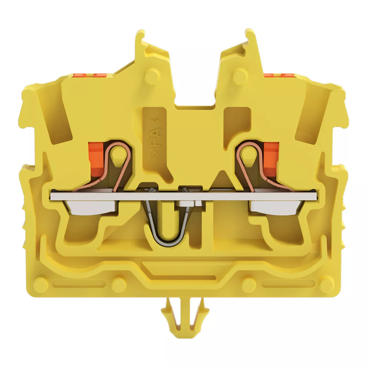 złączka przelotowa Mini 2-przewodowa; z przyciskami; 1 mm²; ze stopką zatrzaskową; opis z boku i na środku; z otworem pomiarowym; Push-in CAGE CLAMP®; 1,00 mm²; żółty