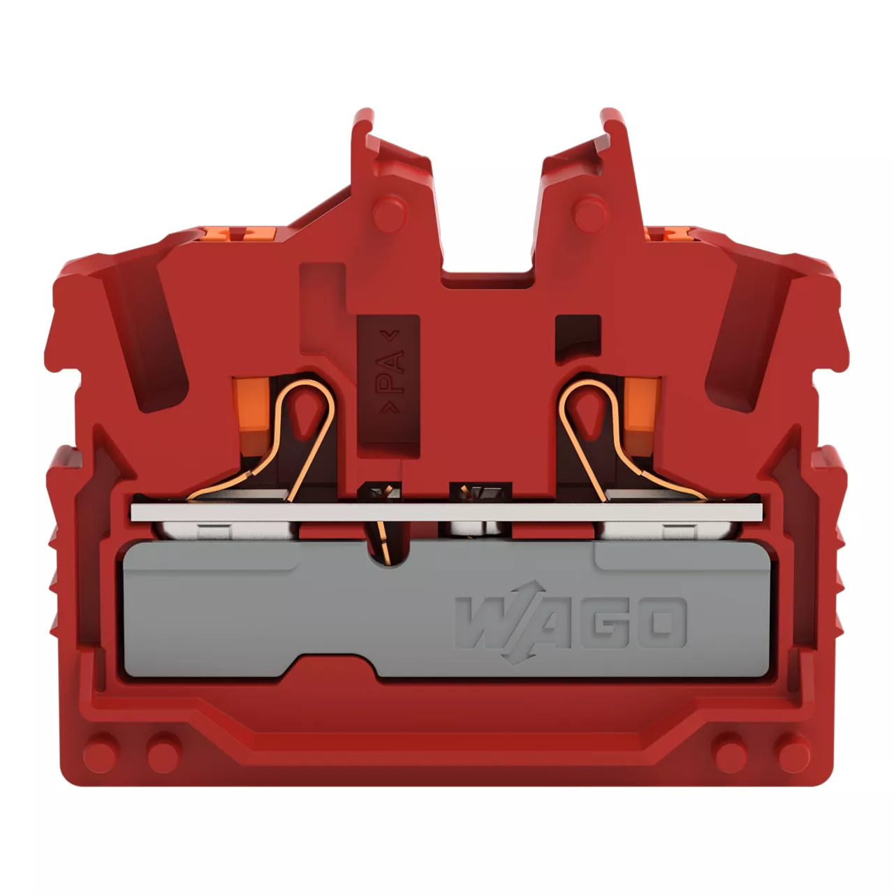 złączka przelotowa Mini 2-przewodowa; z przyciskami; 2,5 mm²; zł. wewn. bez stopki zatrz. bez uchwytu; opis z boku i na środku; z otworem pomiarowym; Push-in CAGE CLAMP®; 2,50 mm²; czerwony