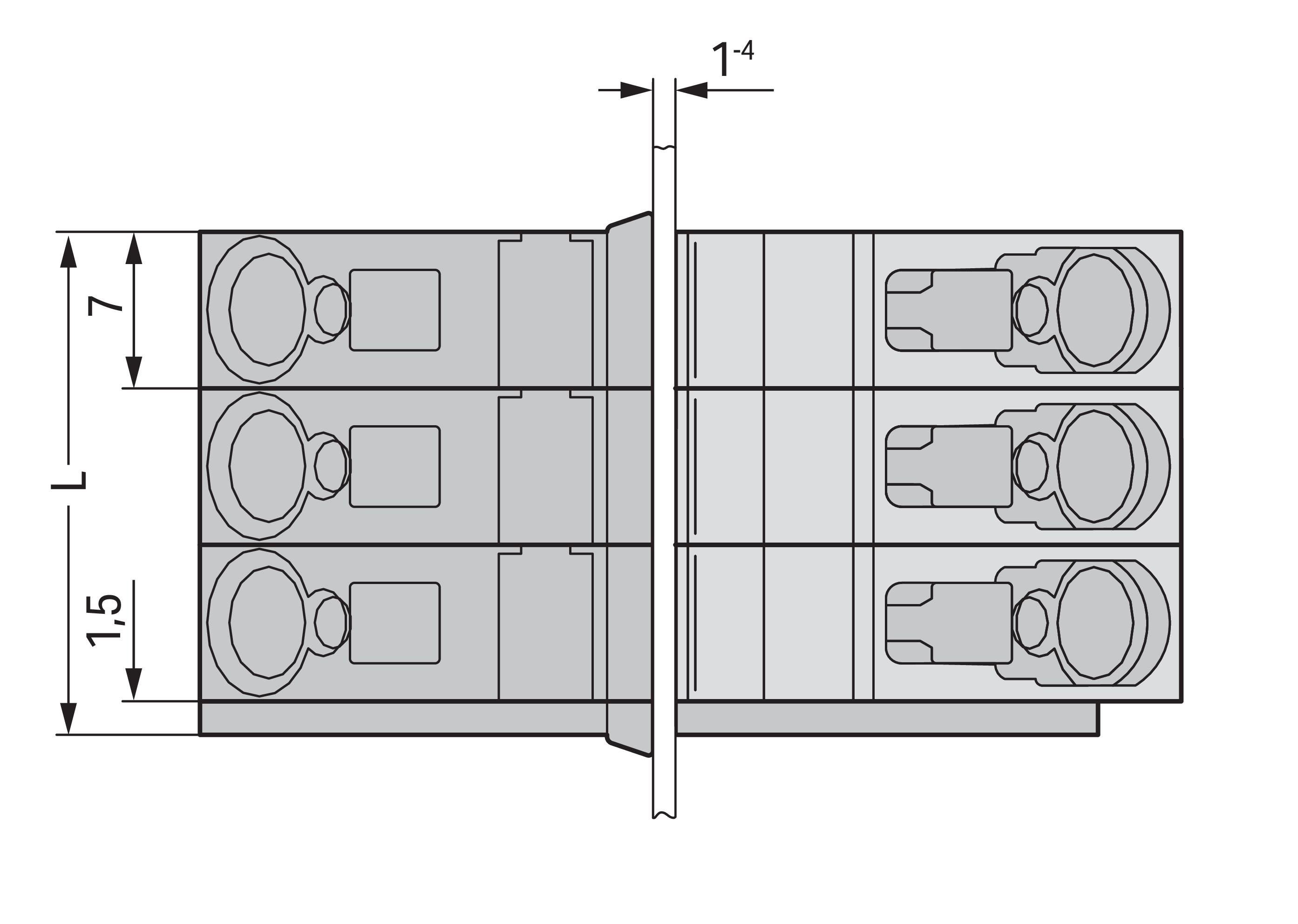 złącze przepustowe; połączenie przewód/przewód; grubość blachy 1 … 4 mm; 4 mm²; raster 7 mm; 7-bieg.; CAGE CLAMP®; 4,00 mm²; szary