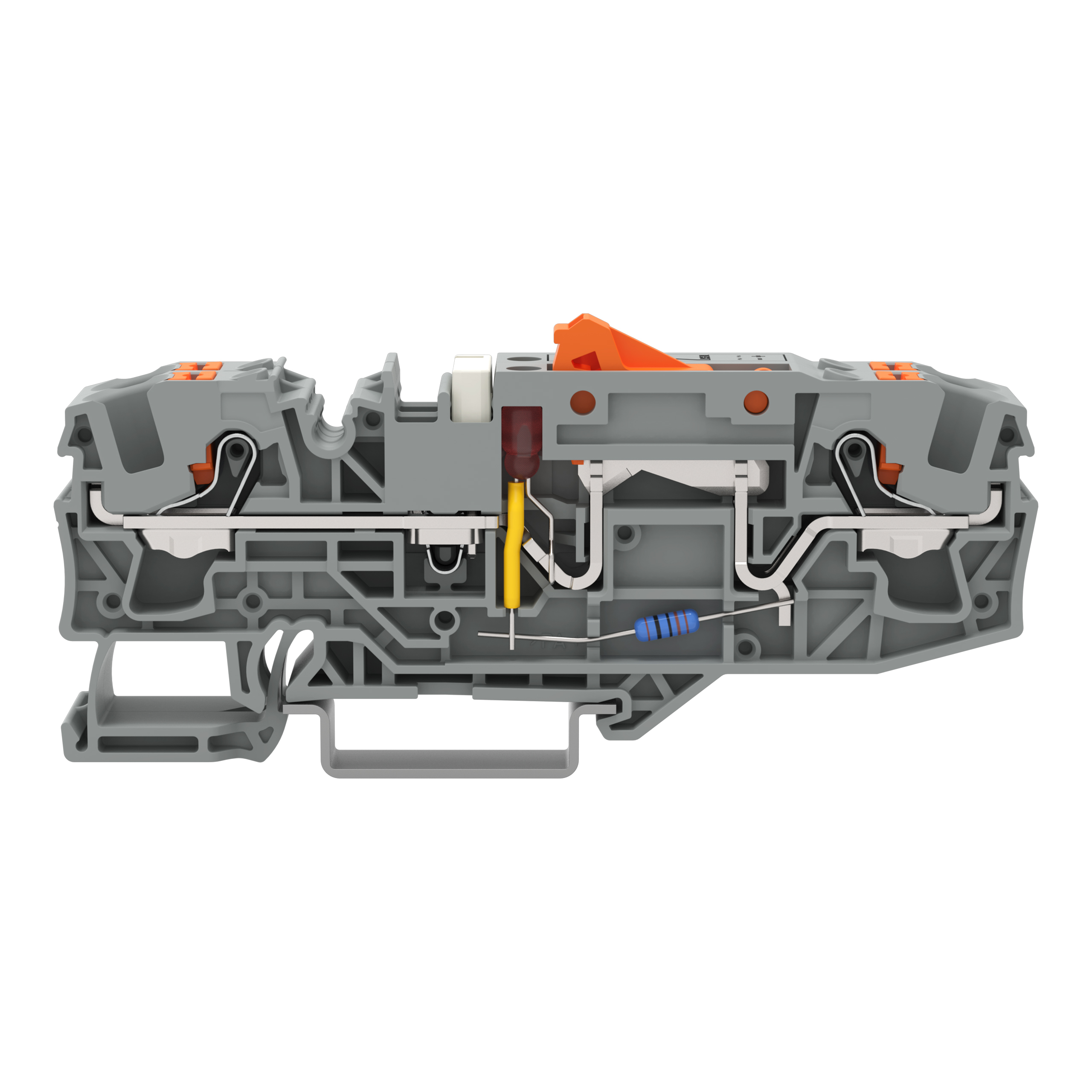złączka rozłączalna do kontroli doziemień; z możliwością pomiaru; z uchwytem łącznika nożowego, pomar.; z przyciskami; 120 V; 6 mm²; Push-in CAGE CLAMP®; 6,00 mm²; szary