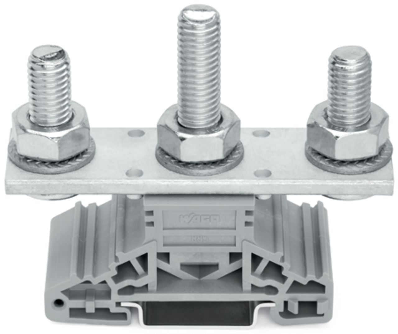 złączka sworzniowa; boczne miejsca na oznaczniki; na szynę TS 35 x 15 i 35 x 7,5; 3 x sworzeń M10; 120,00 mm²; szary