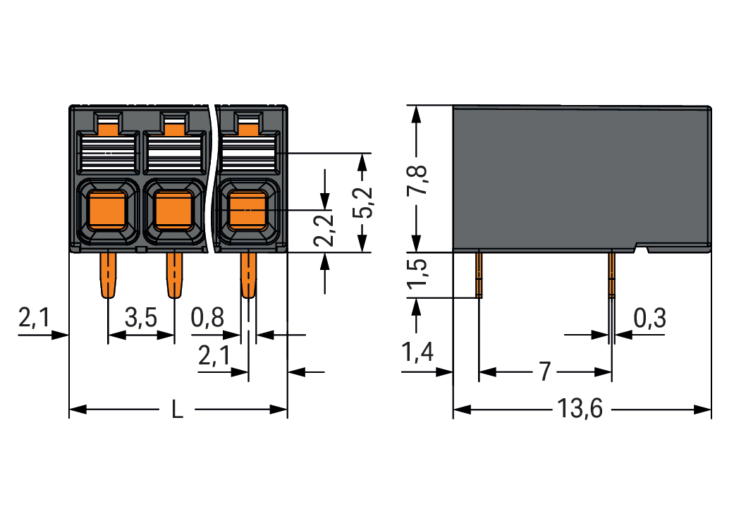 złącze THR do PCB; przycisk; 1,5 mm²; raster 3,5 mm; 12-bieg.; Push-in CAGE CLAMP®; długość pinu lutowniczego 1,5 mm; czarny