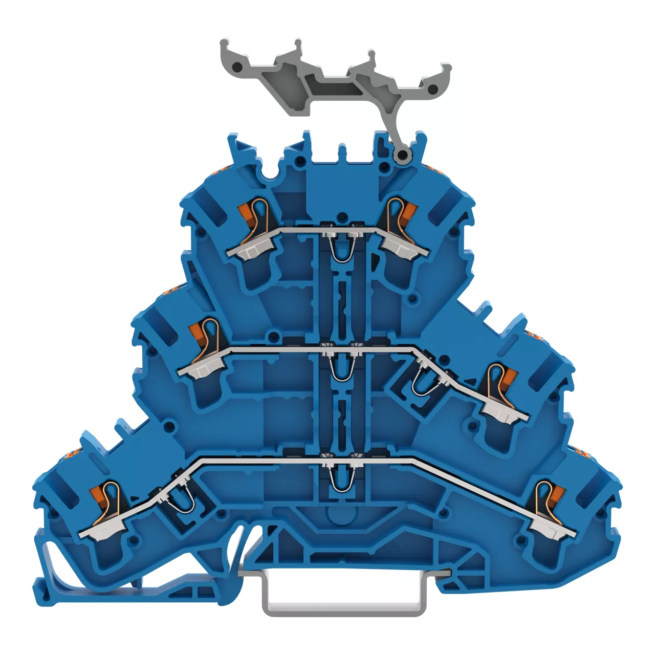 złączka 3-piętrowa; z przyciskami; złączka przelotowa/przelotowa/przelotowa; N/N/N; z podstawką oznacznika; do zastosowań Ex e II oraz Ex i; na szynę TS 35 x 15 i 35 x 7,5; 2,5 mm²; Push-in CAGE CLAMP®; 2,50 mm²; niebieski