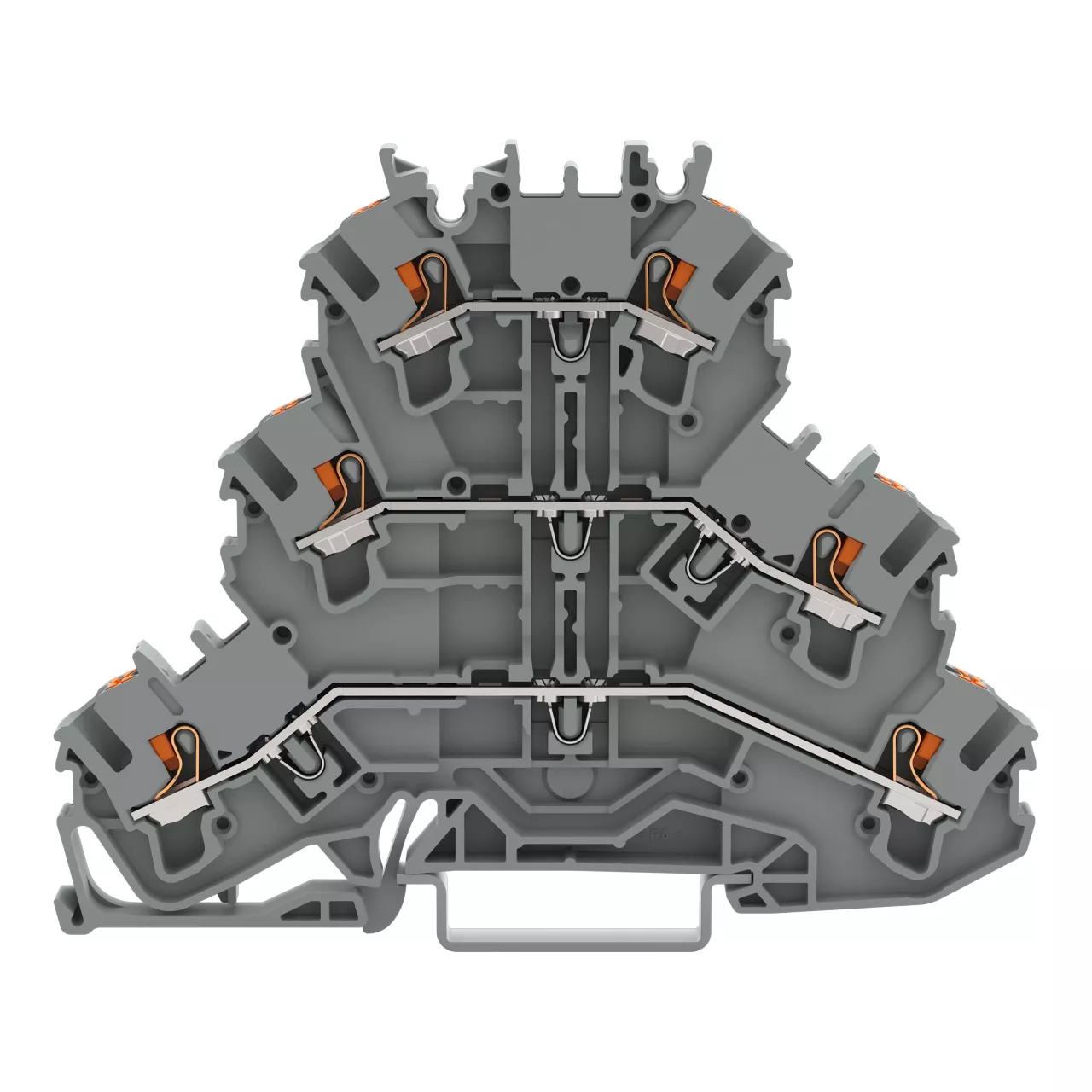 złączka 3-piętrowa; z przyciskami; złączka przelotowa/przelotowa/przelotowa; L/L/L; bez podstawki oznacznika; do zastosowań Ex e II; na szynę TS 35 x 15 i 35 x 7,5; 2,5 mm²; Push-in CAGE CLAMP®; 2,50 mm²; szary