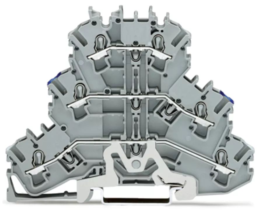 złączka 3-piętrowa; złączka do ekranu/przelotowa/przelotowa; 2,5 mm²; ekranowanie/N/L; bez podstawki oznacznika; na szynę TS 35 x 15 i 35 x 7,5; Push-in CAGE CLAMP®; 2,50 mm²; szary