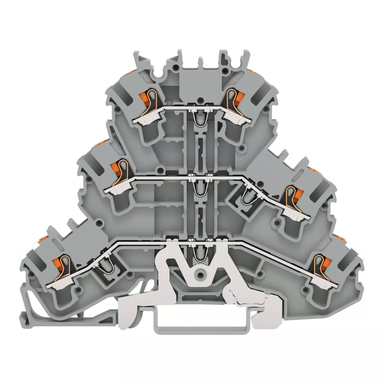 złączka 3-piętrowa; złączka do ekranu/przelotowa/przelotowa; 2,5 mm²; ekranowanie/L/L; bez podstawki oznacznika; na szynę TS 35 x 15 i 35 x 7,5; Push-in CAGE CLAMP®; 2,50 mm²; szary