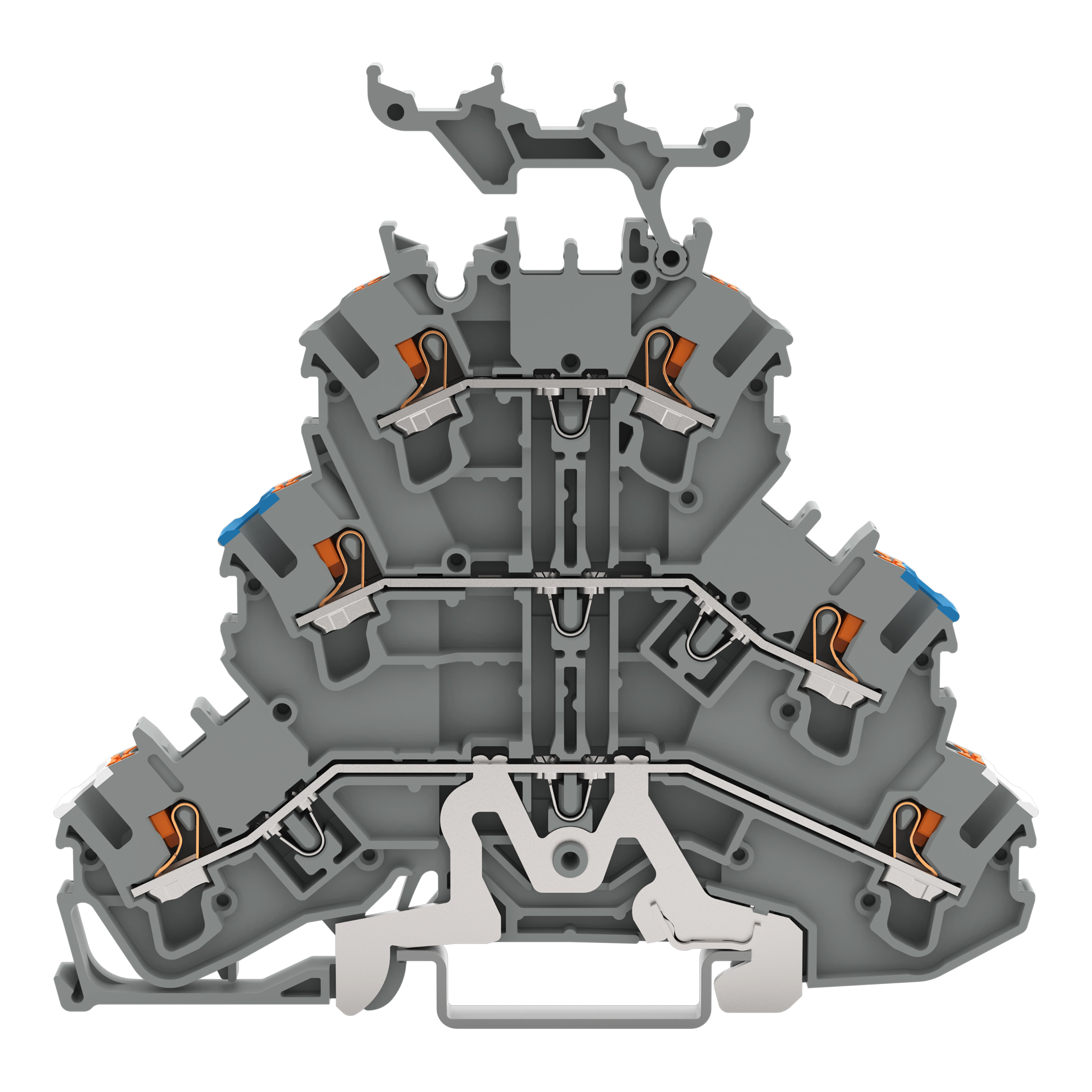złączka 3-piętrowa; złączka do ekranu/przelotowa/przelotowa; 2,5 mm²; ekranowanie/N/L; z podstawką oznacznika; na szynę TS 35 x 15 i 35 x 7,5; Push-in CAGE CLAMP®; 2,50 mm²; szary