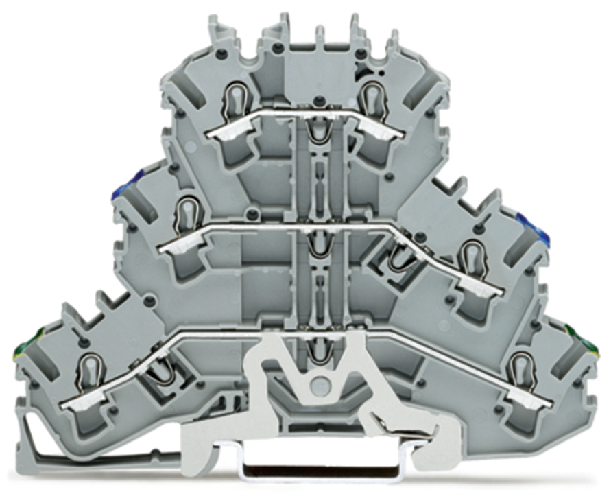 złączka 3-piętrowa; złączka PE/przelotowa/przelotowa; 2,5 mm²; PE/N/L; do zastosowań Ex e II; bez podstawki oznacznika; na szynę TS 35 x 15 i 35 x 7,5; Push-in CAGE CLAMP®; 2,50 mm²; szary