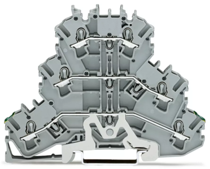 złączka 3-piętrowa; złączka PE/przelotowa/przelotowa; 2,5 mm²; PE/L/L; do zastosowań Ex e II; bez podstawki oznacznika; na szynę TS 35 x 15 i 35 x 7,5; Push-in CAGE CLAMP®; 2,50 mm²; szary