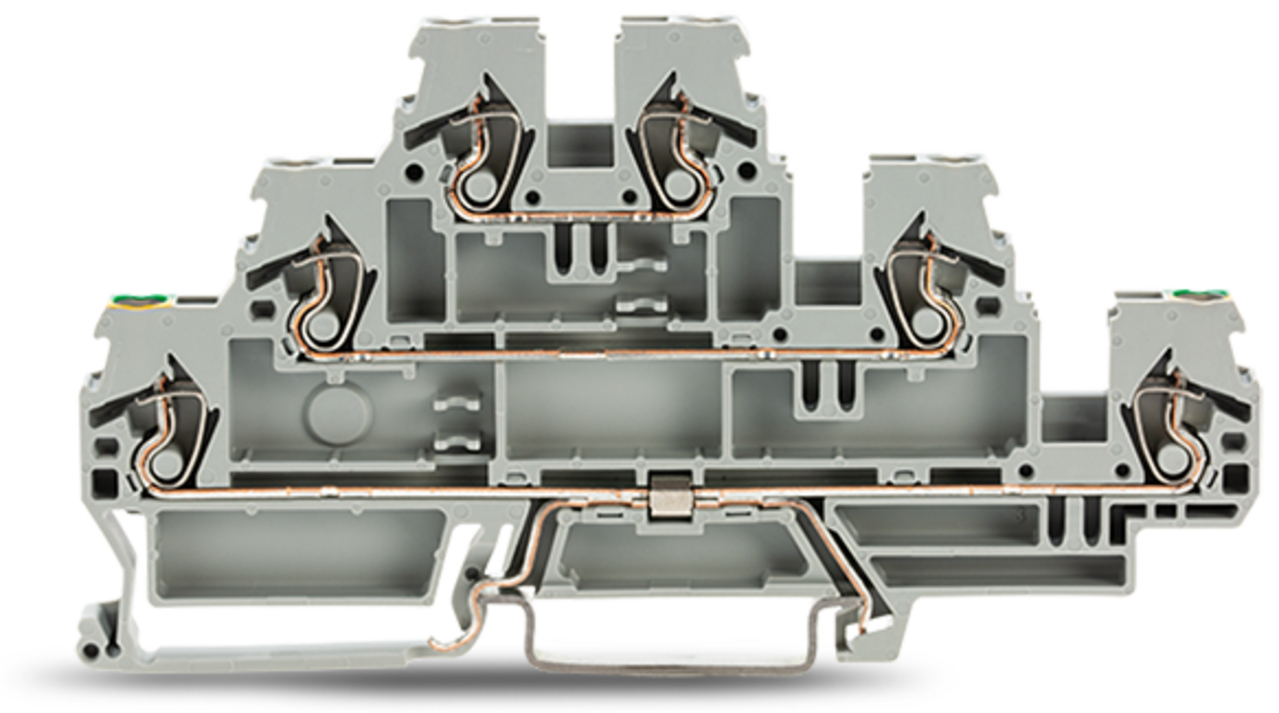 złączka 3-piętrowa; złączka PE/przelotowa/przelotowa; 2,5 mm²; PE/L/L; bez podstawki oznacznika; na szynę TS 35 x 15 i 35 x 7,5; CAGE CLAMP®; 2,50 mm²; szary