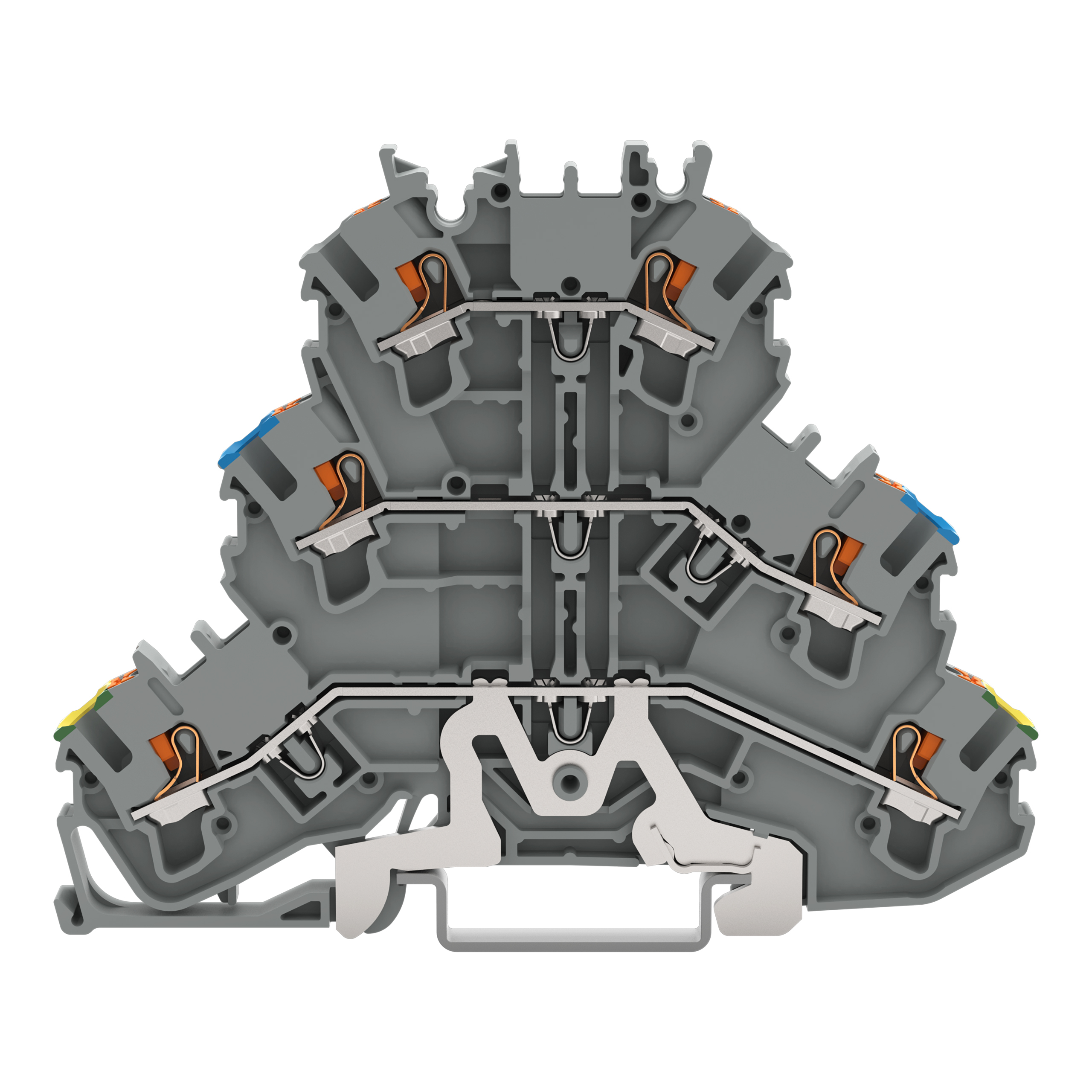 złączka 3-piętrowa; złączka PE/przelotowa/przelotowa; z przyciskami; 2,5 mm²; PE/N/L; do zastosowań Ex e II; bez podstawki oznacznika; na szynę TS 35 x 15 i 35 x 7,5; Push-in CAGE CLAMP®; 2,50 mm²; szary