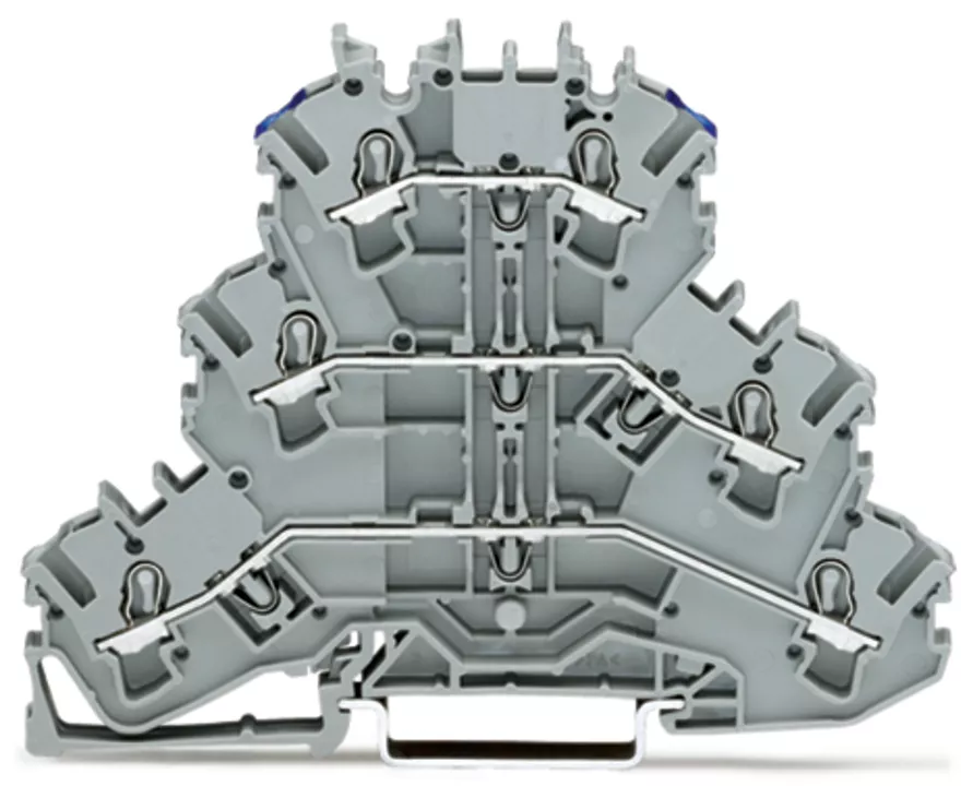złączka 3-piętrowa; złączka przelotowa/przelotowa/przelotowa; L/L/N; bez podstawki oznacznika; do zastosowań Ex e II; otwory na przewody piętro, nadruk nieb.; na szynę TS 35 x 15 i 35 x 7,5; 2,5 mm²; Push-in CAGE CLAMP®; 2,50 mm²; szary