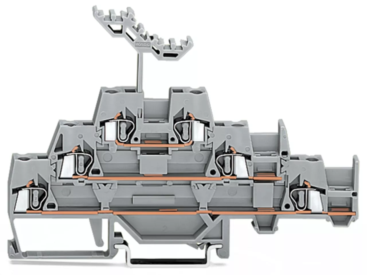 złączka 3-piętrowa; złączka przelotowa/przelotowa/przelotowa; z dodatkowym mostkowaniem dolnego piętra; na szynę TS 35 x 15 i 35 x 7,5; 2,5 mm²; CAGE CLAMP®; 2,50 mm²; szary/szary/szary