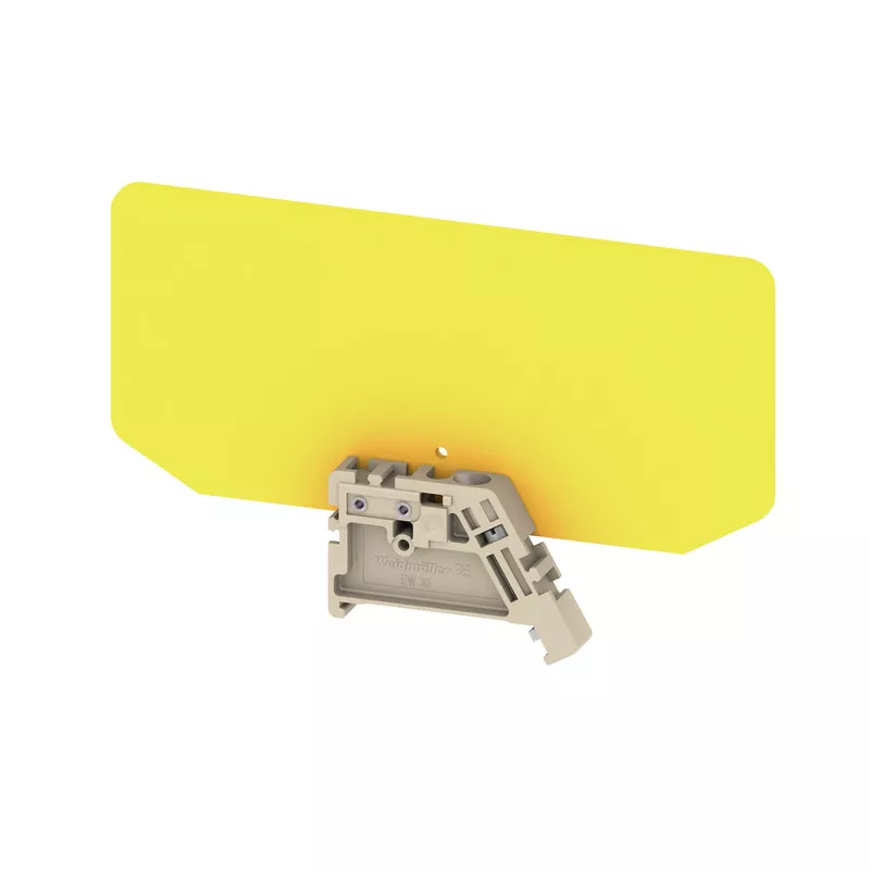Płyta krańcowa i środkwa do ochrony przed dotykiem części czynnych bloków zaciskowych. Płyta służy również do optycznie rozpoznawalnej separacji obwodów elektrycznych w celu uniknięcia błędów w okablowaniu.