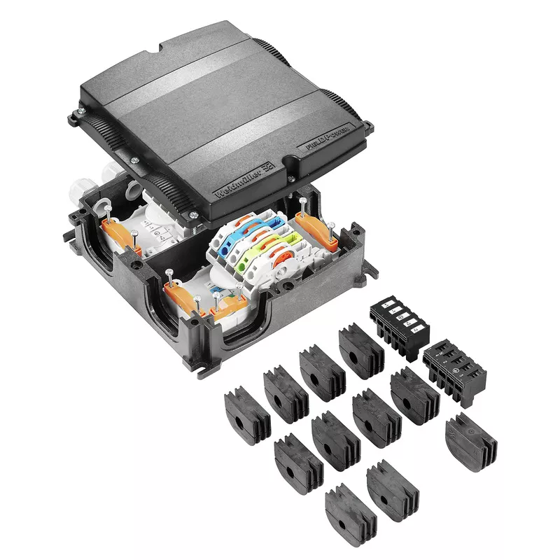 Blok terminala przeznaczony do zasilania gwarantuje bezpieczne i skuteczne zasilanie elektryczne odbiorników. Pokrywa zabezpiecza blok terminalu przed wpływami czynników zewnętrznych.